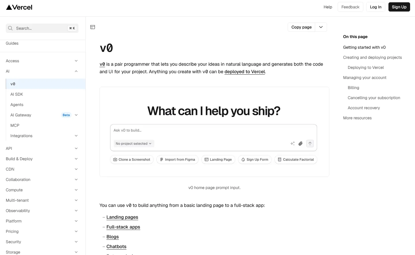 Support: v0 has a community based support program as well as a customer support chat feature supported by categories of documentation organized around either next.js, svelte or turborepo. Their rankings vary with a 4.9 star rating on Product Hunt (44 reviews) down to 2 stars on TrustPilot (36 reviews).
