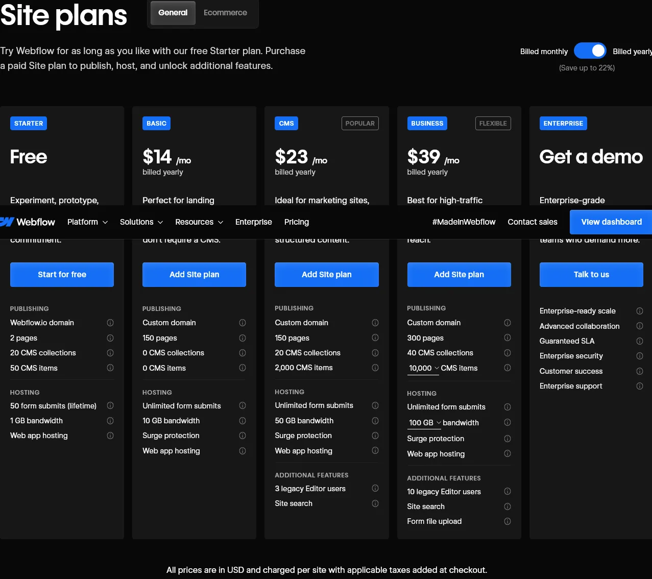 - Subscription dependent, tied to paid Webflow plans exclusively