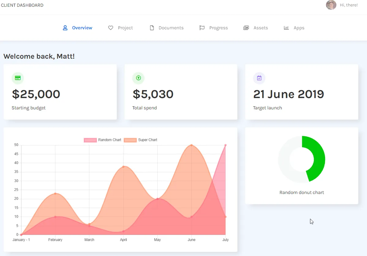 😎 Use this dashboard as the starting interface design base for your main client dashboard view, build more views from it