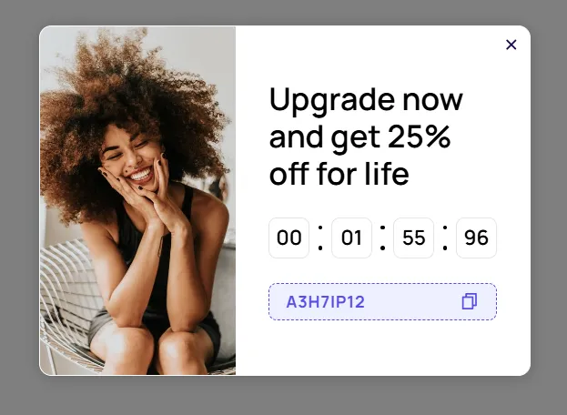 Our demo can help you create a copyable coupon code and a countdown timer.