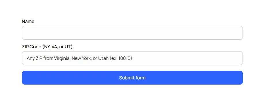 This lowers the submit button’s opacity to 50% until the ZIP field receives an acceptable input, while also making the button unclickable.