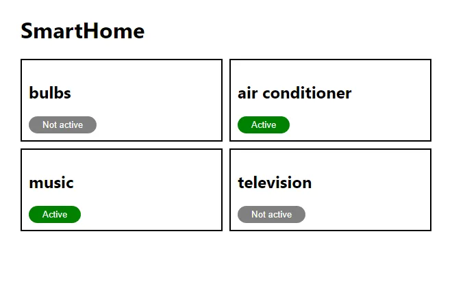 Here we get the state returned from useReducer, map it and display each appliance name and status (active or inactive). Here’s the result: