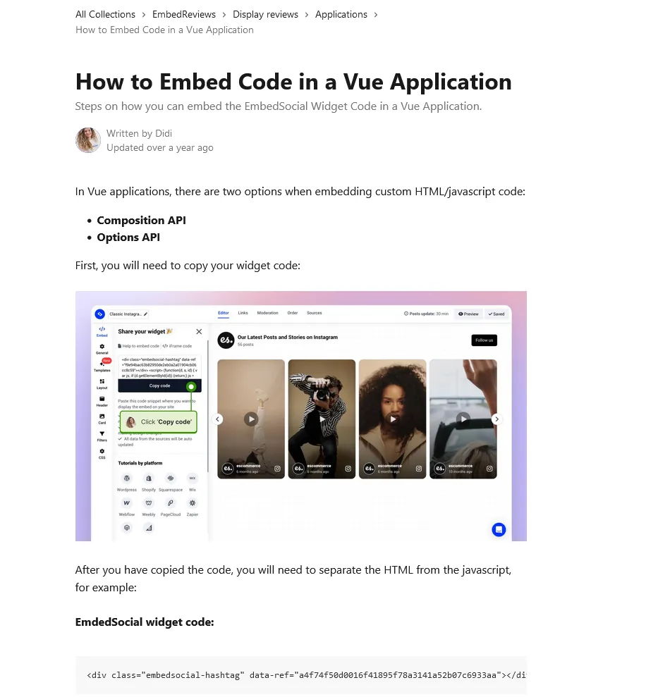 5. Next you can either copy in your source code for your Vue component, or bundle it and include it with an external script in the footer.