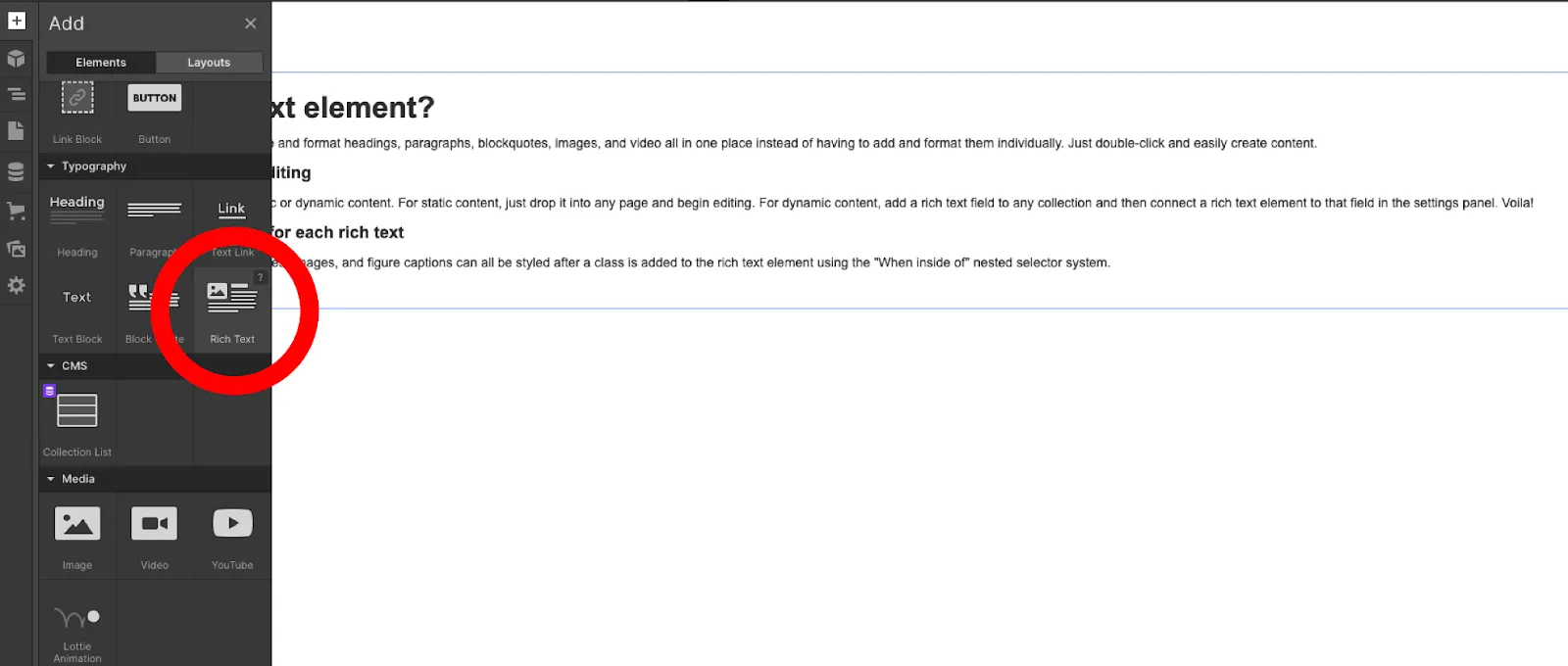 Note: Webflow places these embed components in order of how you place them within the page. Be careful to place embeds after the HTML elements they modify otherwise by the time they run the HTML elements they’re modifying won’t yet exist on the page.
