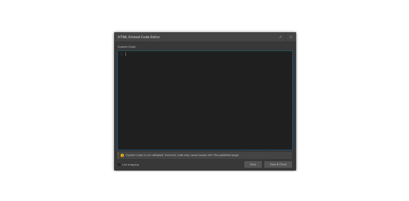 - Once you’ve added it to your page, double click the embed element to open it and begin adding custom code.