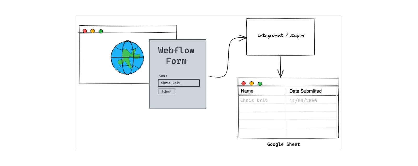 Nocodequest created a great tutorial showing you how to use Native Webflow Forms to submit info into a Google Sheet through Make.com. You can use both Google and Make’s free tiers for this without issue.