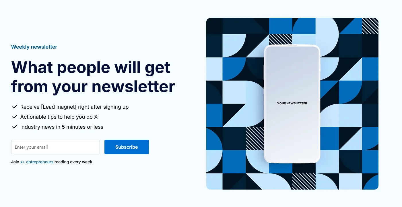 888 Studio has designed a Free Newsletter Sign-Up Landing Page template for your newsletter, to help you grow an audience. Just clone the project to get started!