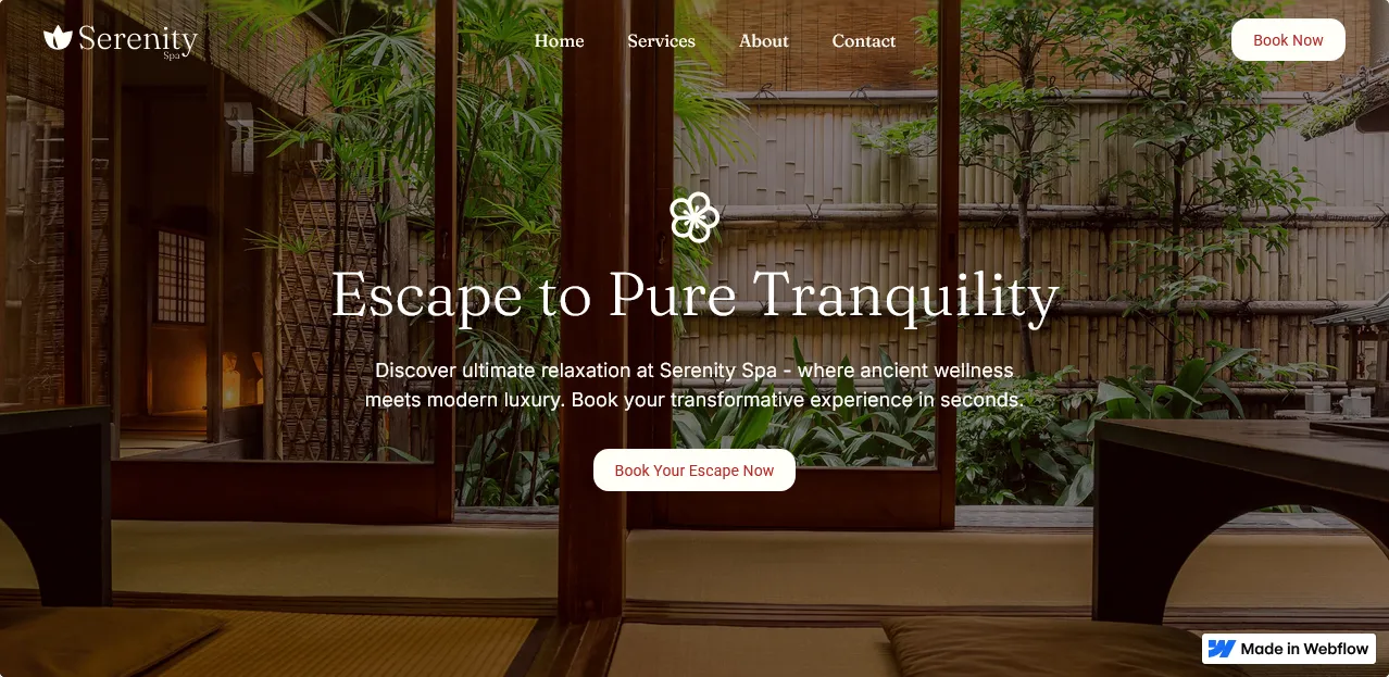A beautiful, modern spa and wellness landing page template with an integrated native booking form – fully built in Webflow and free to clone. Perfect for spas, salons, massage therapists, estheticians, or any service-based business looking for a clean and professional website. The booking form is powered by FlowBookings – a native Webflow app that lets you create fully customizable booking forms with Webflow elements. You can set working hours, durations, buffer times, capacity, collect payments with Stripe, and automate email reminders — all from a single dashboard.