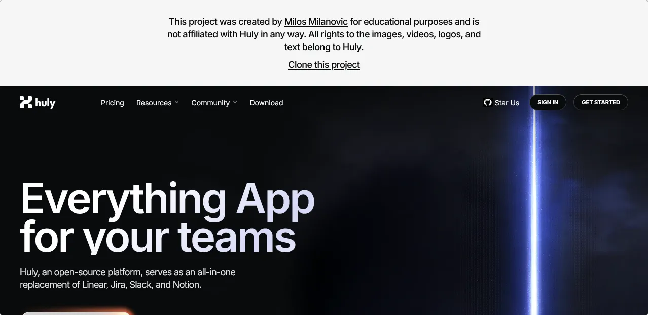 A Webflow clone of the iconic Huly.io website - built 100% for educational and inspirational purposes.Explore interactions, layout techniques, and the way motion is used to enhance design.