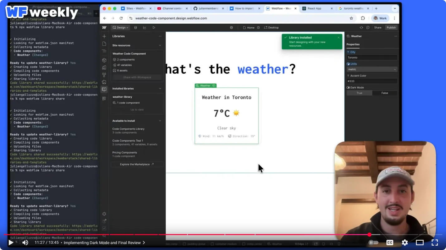 Importing the Component into Webflow: