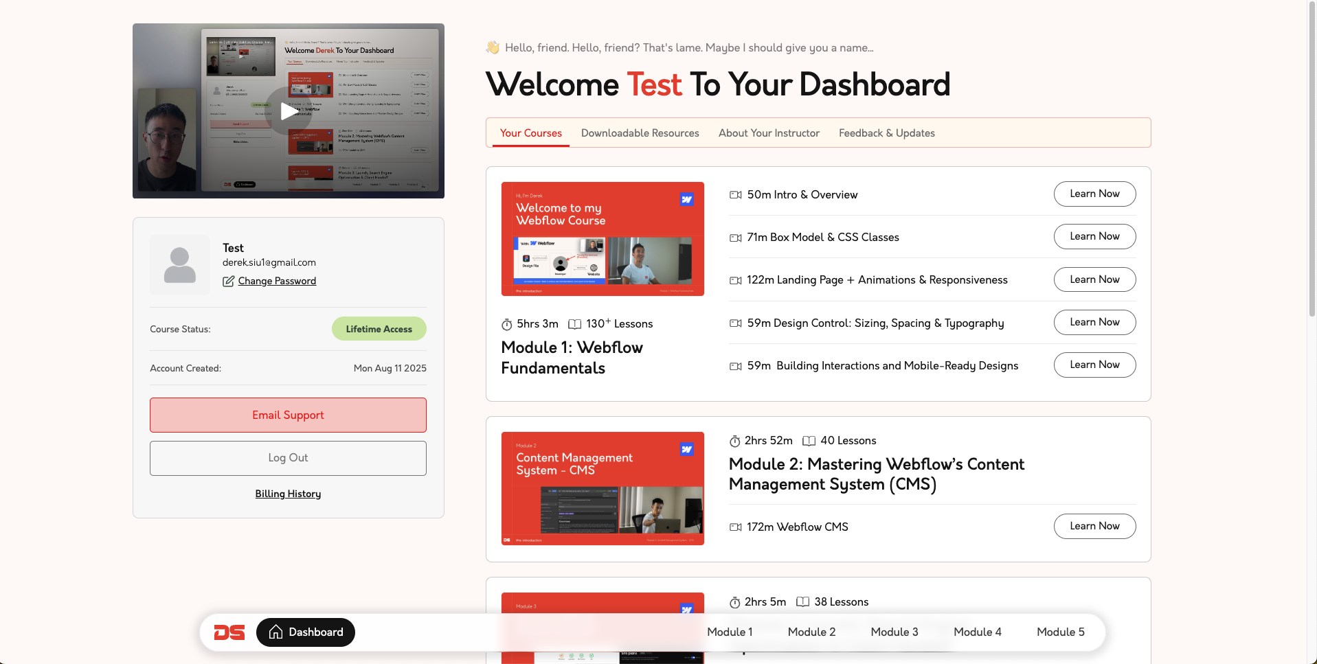 I built my courses using memberstack as I was fed up with the templated options such as cousera, teachable, skool, etc. I figured since I'm a WF developer might as well do it myself giving a more custom design and tailored UX.