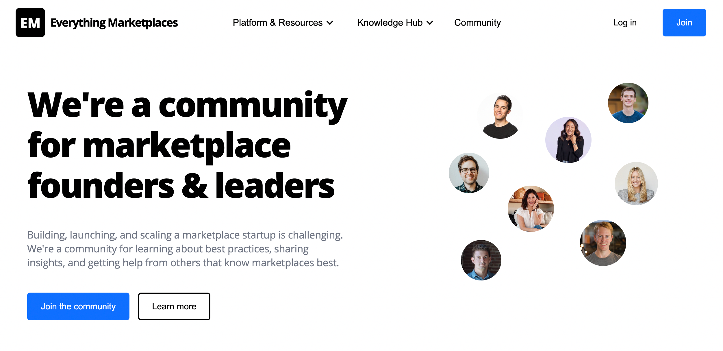 Everything Marketplaces is where founders go to learn, grow, and accelerate their marketplace startup. We support founders with our main platform & resources, products we've launched (Marketplace School, Co-founder match, jobs board, investor database), community, weekly events (both online & offline), and even back founders by investing in them through our early stage fund.