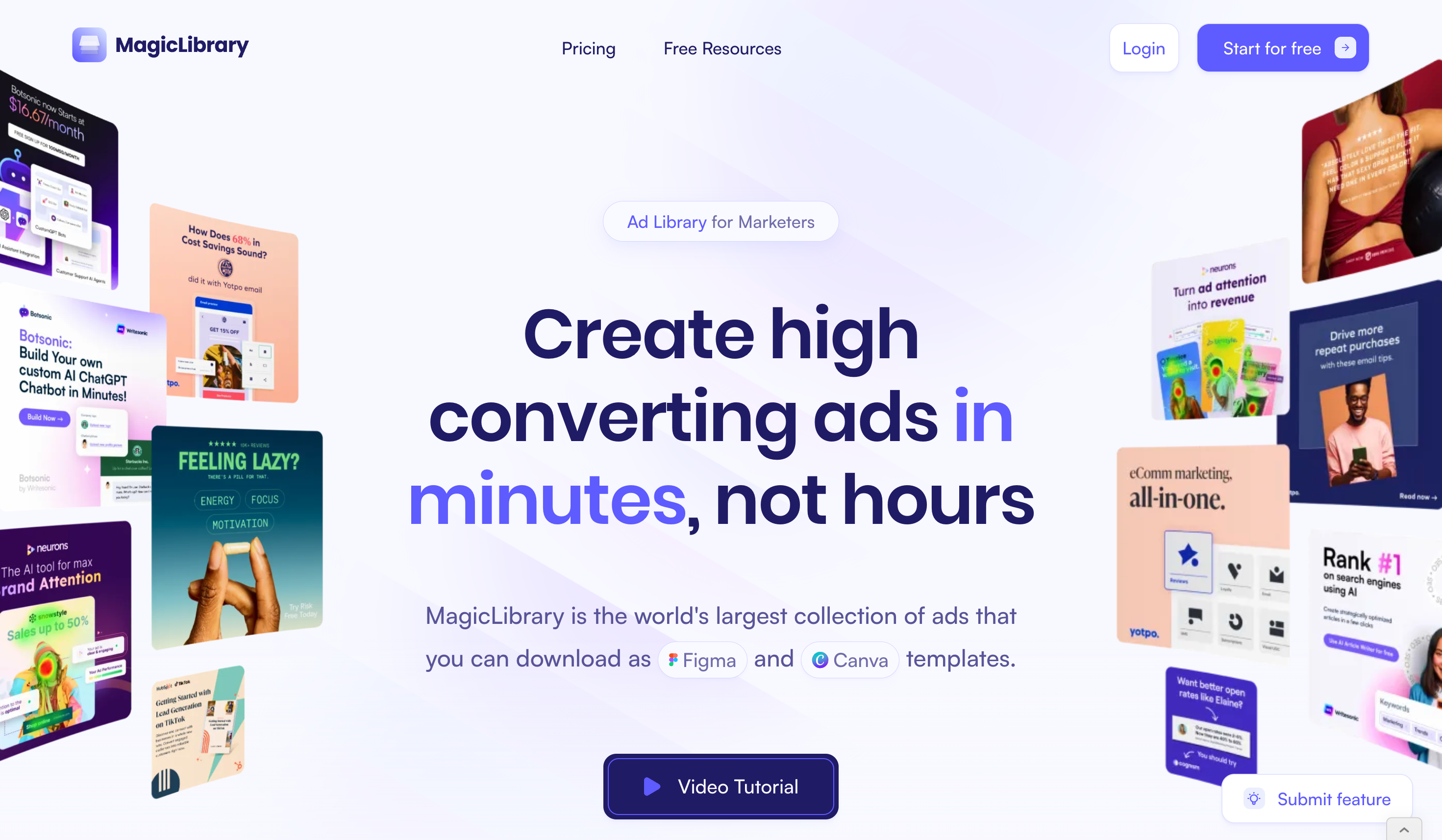 The process of building MagicLibrary was quite straight forward. We came up with the idea and were quite sure it will be working after talking to a couple of potential customers. We then started to research the high performing ads and created the templates with the help of our designers.