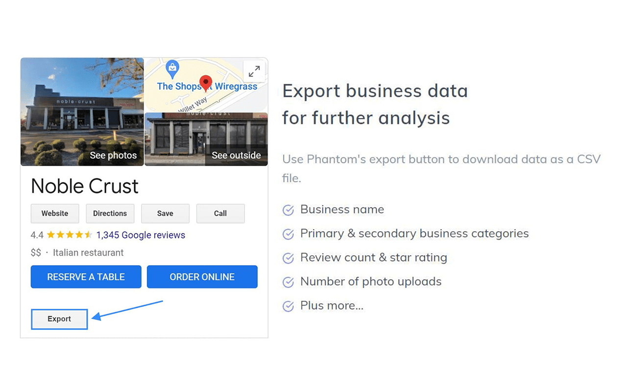 Phantom is a Chrome Extension designed to provide business owners and marketers with better insights from Google Search & Maps. One of the core features of the tool is the ability to visualize and export Google reviews for any business profile.