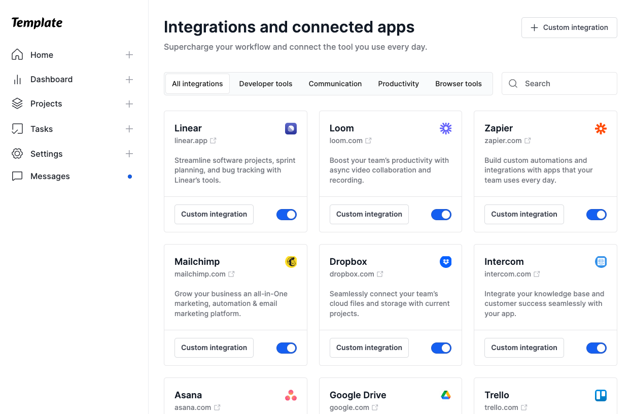 Here's another free dashboard template with an itemized grid - we've used it to display integrations, but it would be perfect for showing your members useful links, other members, and more. Enjoy!