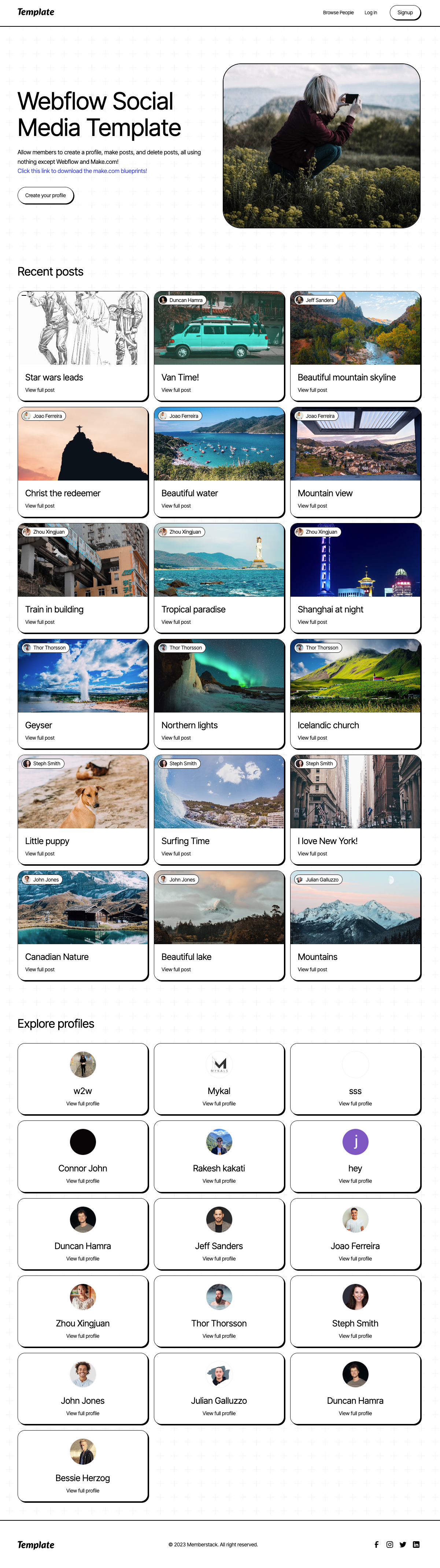 Build your own social media platform using Webflow, Memberstack, and Make.com!