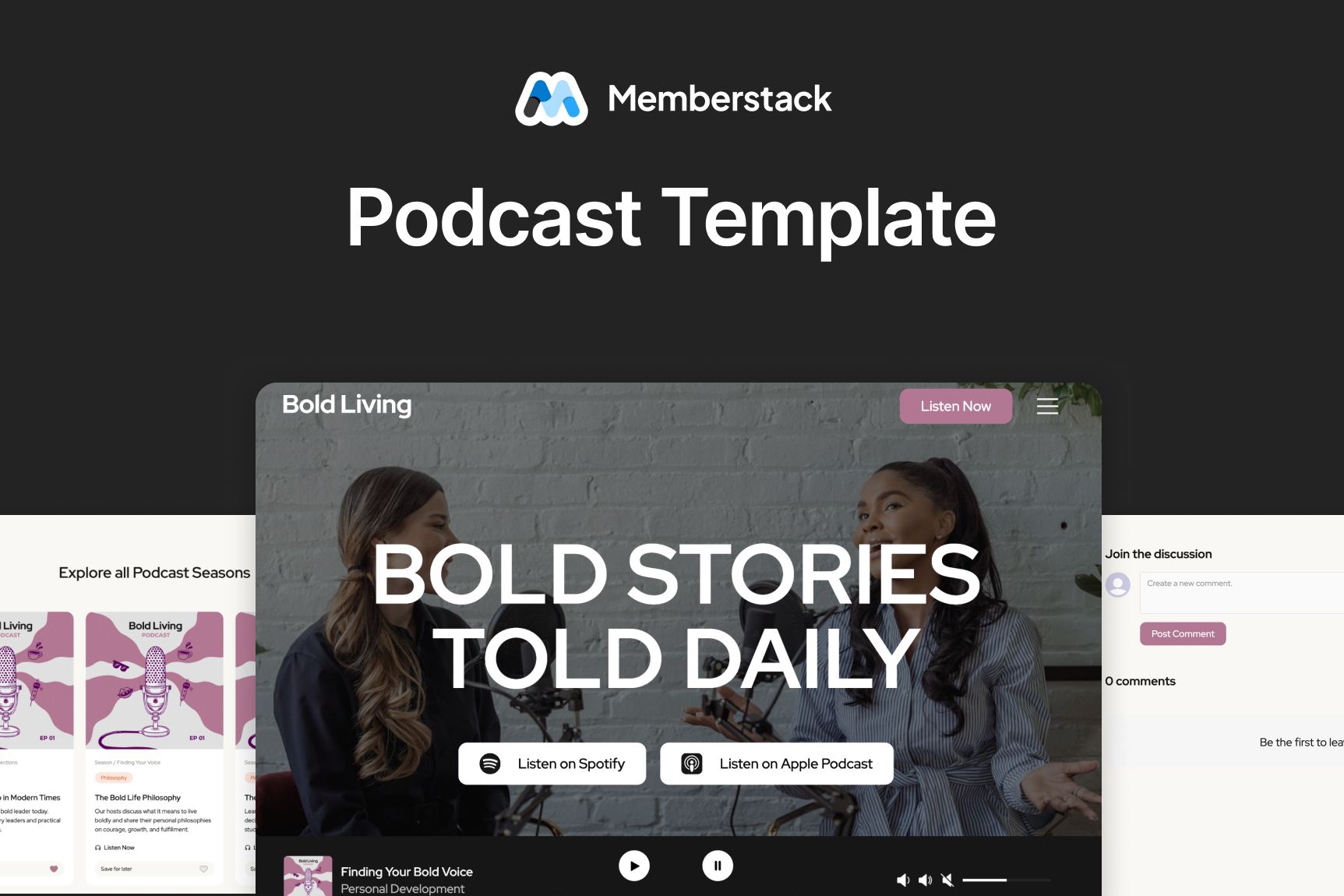 ViewA fully branded, audience-first audio platform powered by Webflow + member features.