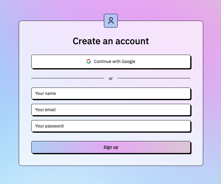 • Option to sign up using Google