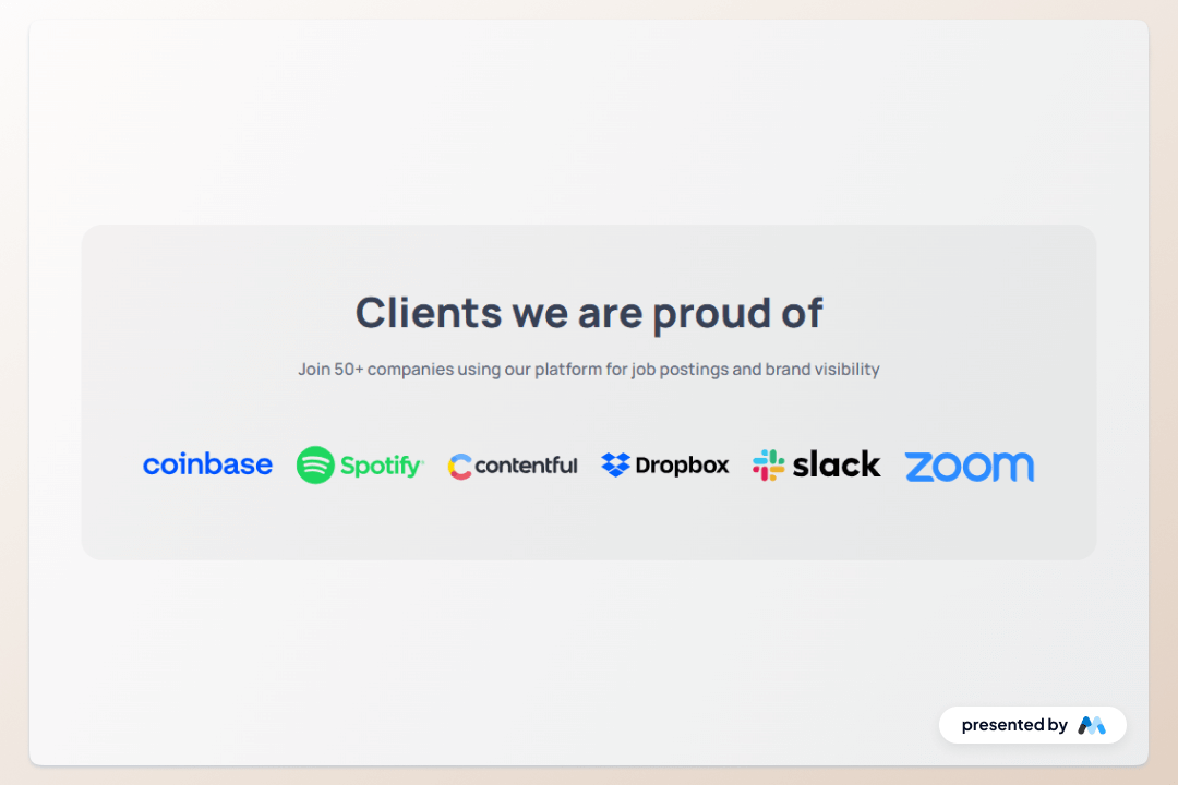 • Corporate websites showcasing partner brands.Portfolio sites for design agencies displaying client logos.Event websites featuring sponsors and partners.E-commerce sites highlighting brand collaborations.Landing pages for services that require client testimonials.