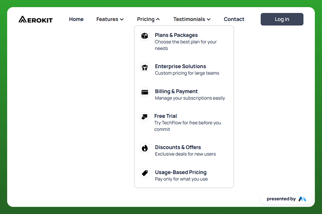 Conclusion: The AeroKit UI Navbar02 Dropdown is a functional and adaptable navigation solution that can enhance user experience across various website types.