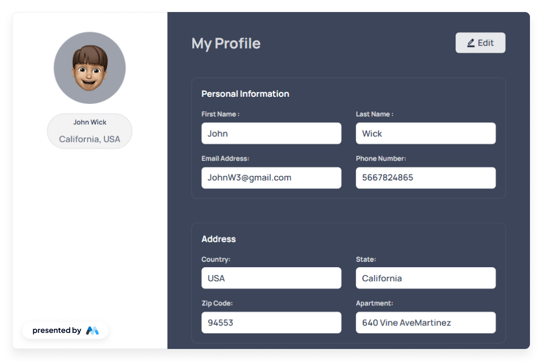 The Unstyled Profile Form is a simple and functional form designed for users to update their profile information. It includes fields for first name, last name, and phone number, along with success and error messages. Key Features Customizable fields for first name, last name, and phone number Success message upon successful submission Error message for submission failures Lightweight and easy to integrate into existing designs Design Elements Minimalist design with no predefined stylesFlexbox layout for form elementsResponsive design suitable for various screen sizes Potential Use Cases User profile management for web applications Membership sites requiring user information updatesE-commerce platforms for customer account management Community forums for user profile editing Conclusion: The Unstyled Profile Form offers a straightforward solution for user profile updates, making it versatile for various applications while allowing for easy customization to fit different design aesthetics.