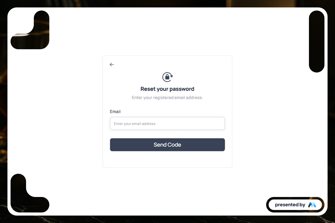 - Email input field with placeholder text 'Enter your email address.'Submit button labeled 'Send Code' that triggers the password reset process.Success message displayed upon successful submission: 'Thank you! Your submission has been received!'Error message displayed if submission fails: 'Oops! Something went wrong while submitting the form.'Responsive design with a clean layout suitable for various screen sizes.