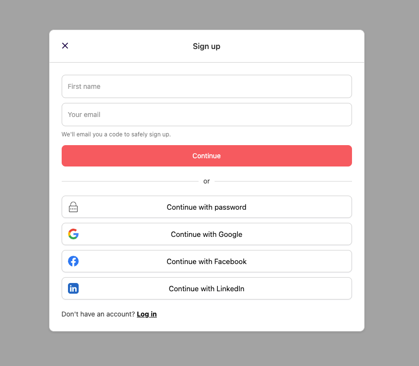 Sign up with Email modal