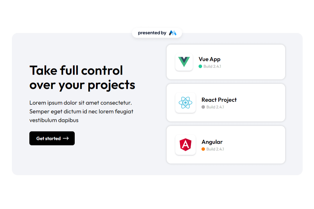 • Supports Vue, React, and Angular frameworks