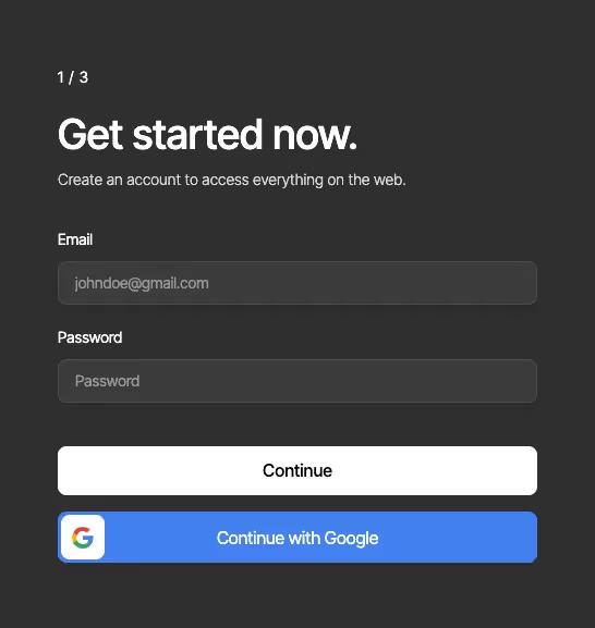 • Clear progress indication (1/3)Google integration for sign-in option