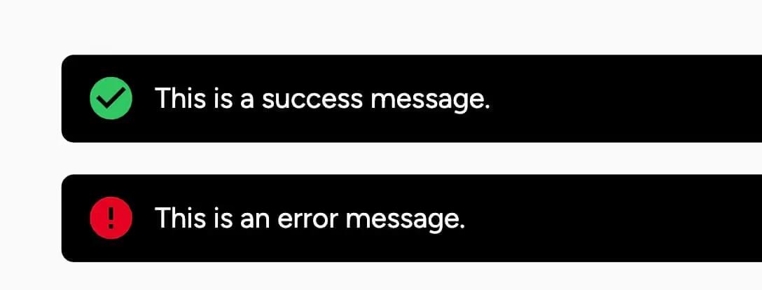 The Error and Success Boxes component provides a visually appealing way to display feedback messages to users, indicating success or error states in a web application. Key Features Customizable success and error messages Includes icons for visual representation Responsive design suitable for various screen sizes Fixed position for consistent visibility Easy to integrate with forms and user interactions Design Elements Clean and modern aesthetic Color-coded borders for success (green) and error (red) messages Rounded corners and shadow effects for depth Flexbox layout for easy alignment of content Potential Use Cases Web applications requiring user feedback on form submissionsE-commerce sites to confirm order success or notify of errors Content management systems for alerting users of status changes Customer support portals for displaying ticket status updates Conclusion: The Error and Success Boxes component is versatile and user-friendly, making it an essential tool for enhancing user experience through clear feedback mechanisms.