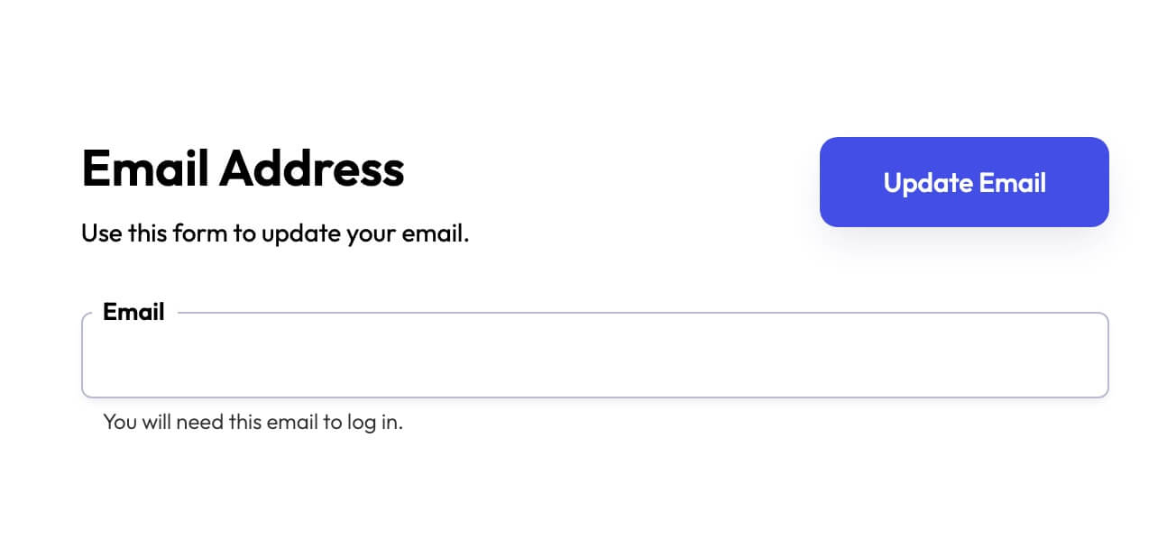The Unstyled Update Email component is designed to facilitate users in updating their email addresses through a simple form interface. It includes essential fields and messages for user interaction. Key Features Form for email address updateSuccess and error messagesRequired email input fieldUser-friendly interface Design Elements Minimalistic design with no stylingClear headings and labelsResponsive layout suitable for various devices Potential Use Cases Web applications requiring user email updates Membership sites needing email verificationE-commerce platforms for customer account management Online services with user account functionalities Conclusion: The Unstyled Update Email component is a versatile tool for any web application that requires user email management, offering a straightforward and effective solution without unnecessary design elements.