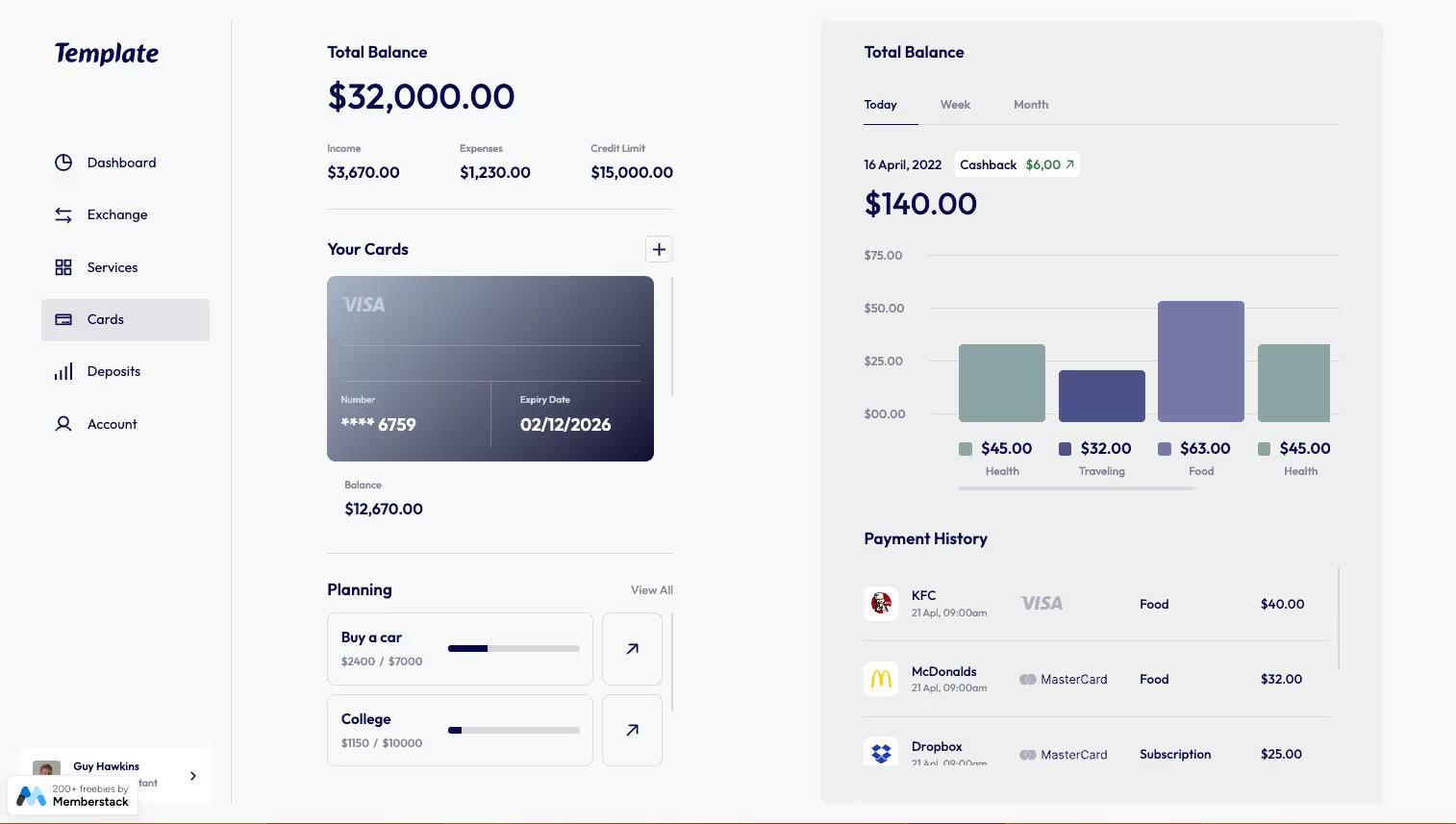 A finance themed dashboard layout built in Webflow & Powered by Memberstack, designed to provide a comprehensive overview of financial data.
