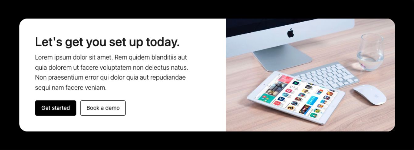 The Half Image CTA Section is designed to create a visually appealing call-to-action area that combines text and imagery effectively. It features a split layout that enhances user engagement and drives conversions. Key Features Responsive design with a grid layout Includes customizable buttons for actions like 'Get started' and 'Book a demo'Incorporates an eye-catching image to complement the text Flexible padding and margin settings for easy adjustments Supports external links for call-to-action buttons Design Elements Clean and modern aesthetic with rounded corners Light background color with contrasting text for readability Use of shadow effects to create depth Grid system for balanced layout of text and image Potential Use Cases Landing pages for service-based businesses Promotional sections for product launches Sign-up or subscription forms for online services Event registration pages Showcasing portfolio items for creative professionals Conclusion: The Half Image CTA Section is a versatile component that effectively combines visual elements with actionable content, making it ideal for various marketing and promotional purposes.