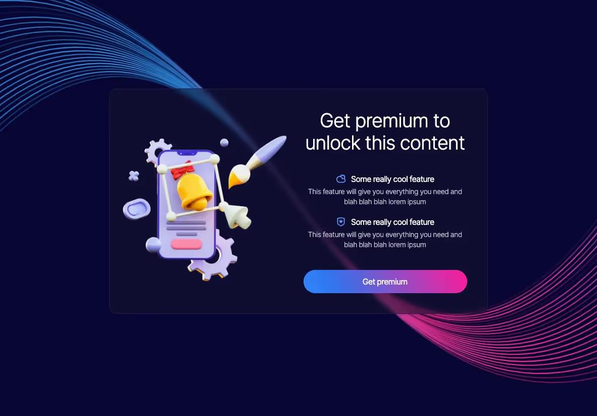 The Block Access component is designed to inform users that they do not have permission to access certain features, encouraging them to upgrade their plan or log in. It provides a clear and visually appealing message for restricted access. Key Features Responsive design suitable for various screen sizes Customizable text and links for user actions Includes visual elements such as icons and images Background image support for enhanced aesthetics User-friendly layout with clear call-to-action buttons Design Elements: Flexbox layout for centering content Soft color palette with a light background and dark text Use of icons for visual appeal Rounded button styles for a modern look Consistent typography with a focus on readability Potential Use Cases: Web applications requiring user authentication Membership sites with tiered access levelsE-commerce platforms with restricted product features SaaS products needing user upgrade prompts Educational platforms with course access limitations Conclusion: The Block Access component is a versatile solution for managing user access, effectively combining functionality with an appealing design to enhance user experience.