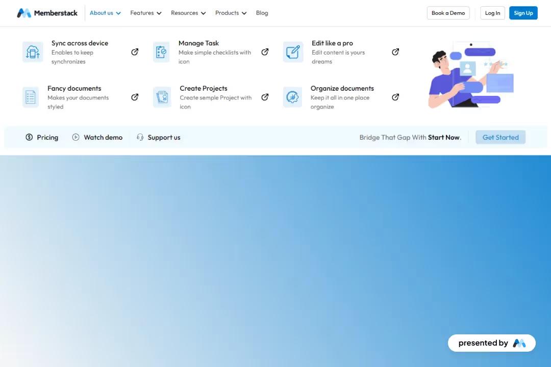 • Includes login and signup buttons