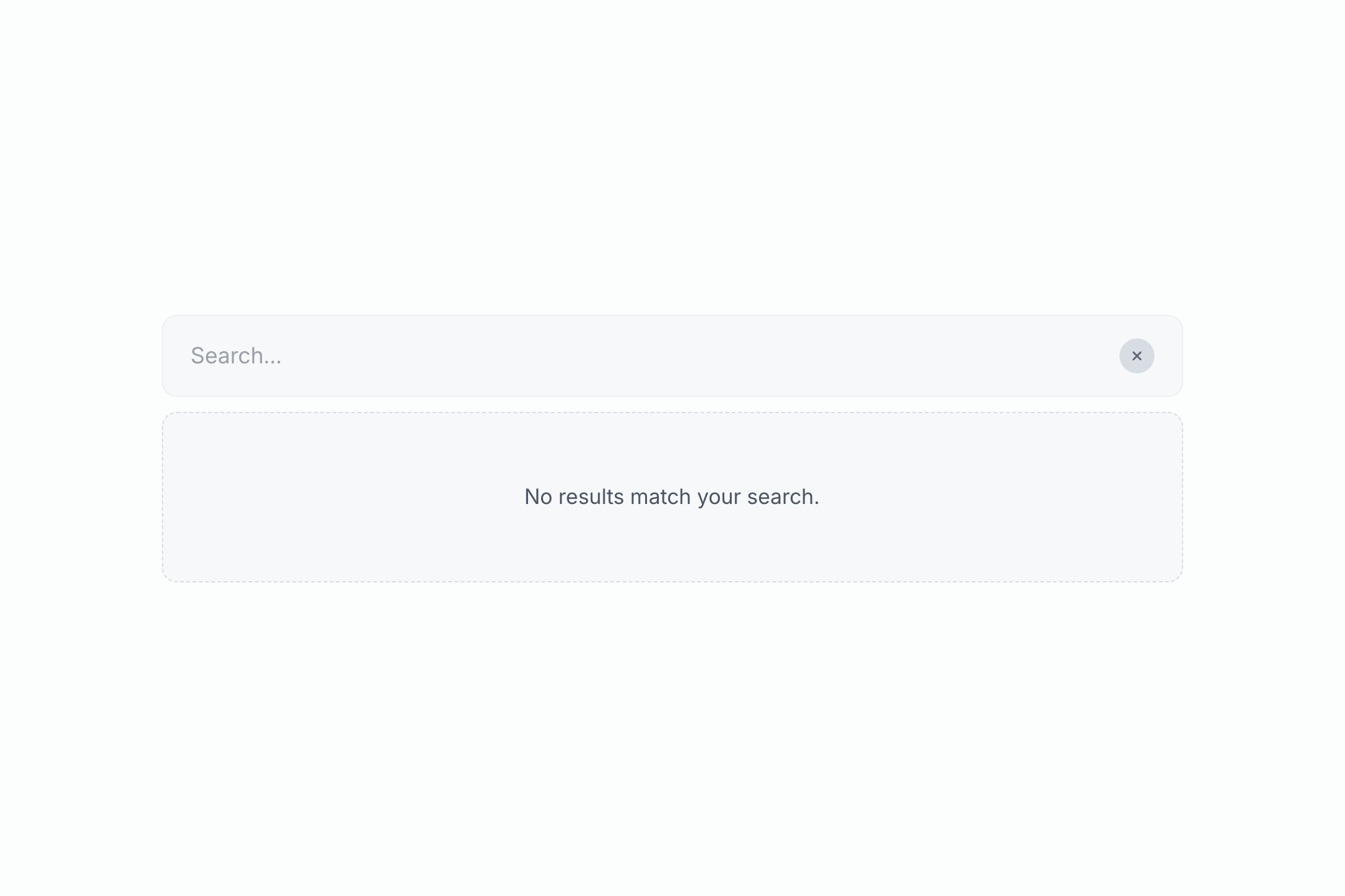 • "No results" state shown when nothing matches