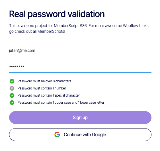 Make sure to follow the tutorial from MemberScript 36! https://www.memberstack.com/scripts/password-validation