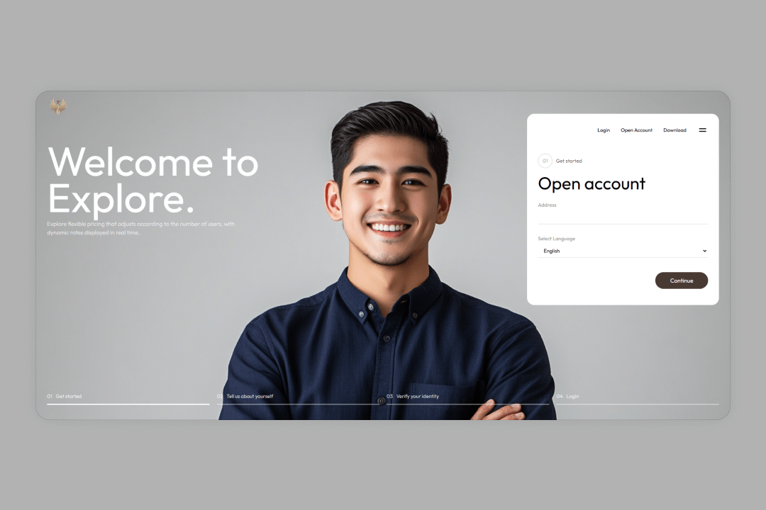 • Multi-step registration process with clear navigation.Dynamic input fields for user data collection, including address and language selection.Responsive design that adapts to different screen sizes.Form validation messages to inform users of submission success or failure.Customizable styling options for branding.