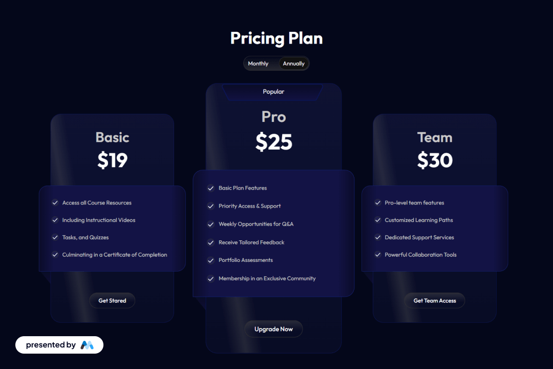 • Educational platforms offering course pricingE-commerce sites displaying membership options