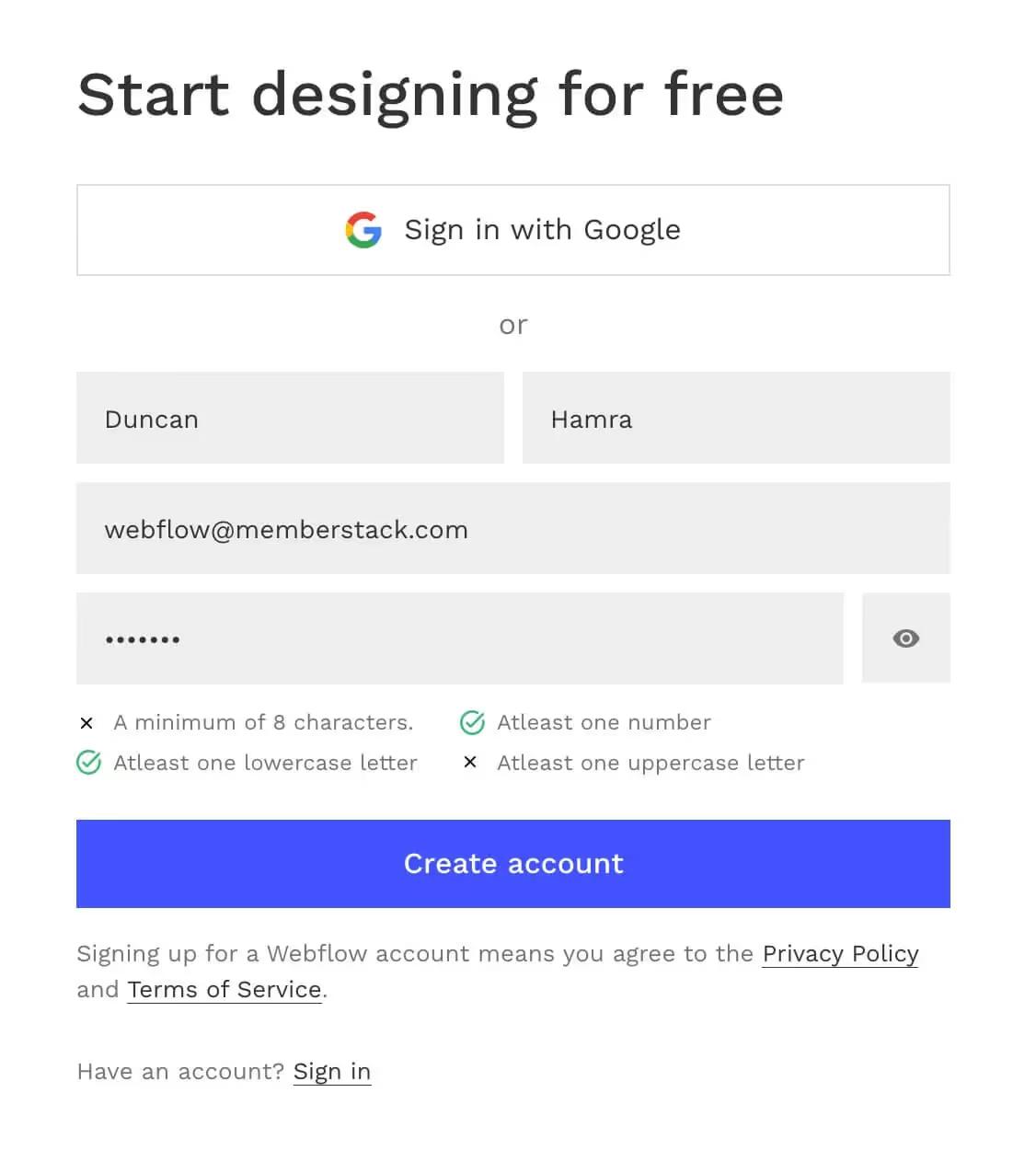 Webflow Sign Up Clone