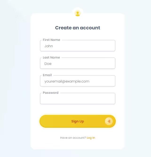 The Yellow Sign Up Form is a visually appealing and user-friendly component designed for capturing user registration details. It features a vibrant yellow button and a straightforward layout to enhance user engagement.
